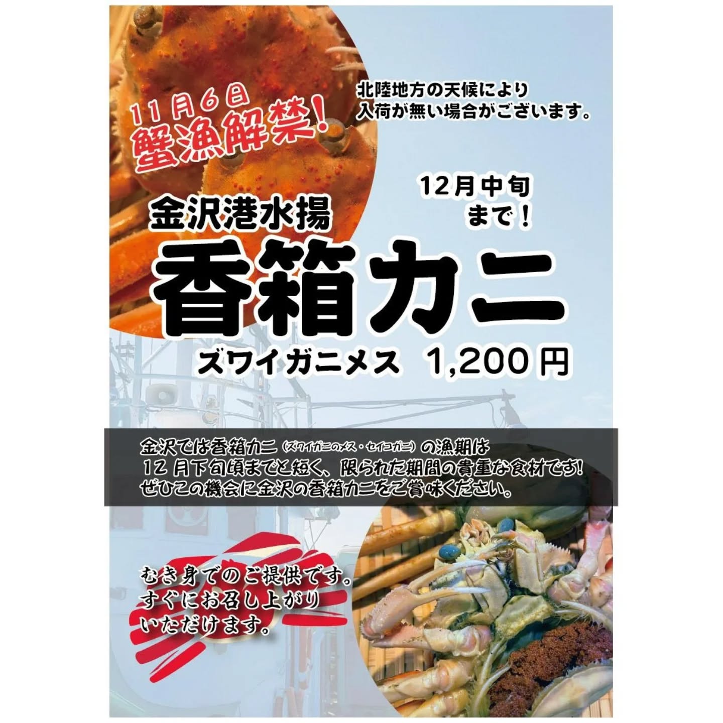 いよいよ!石川県の🦀漁解禁!